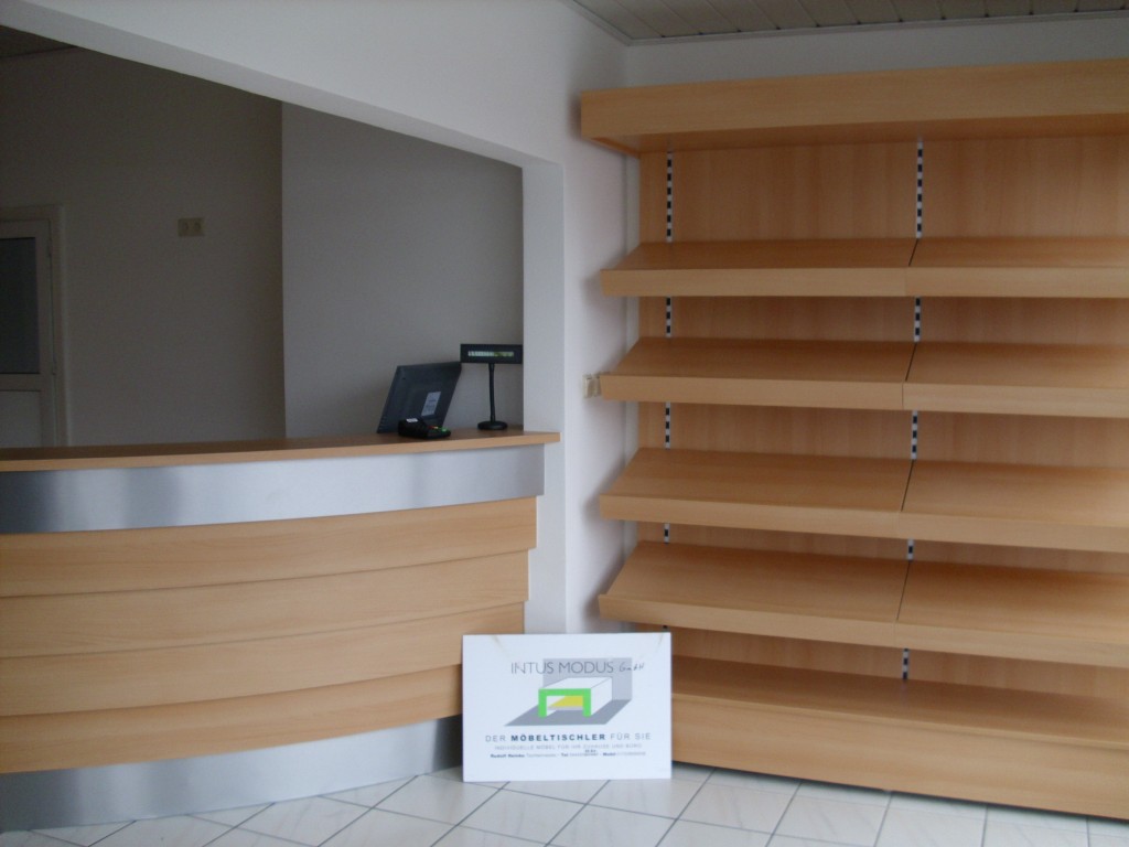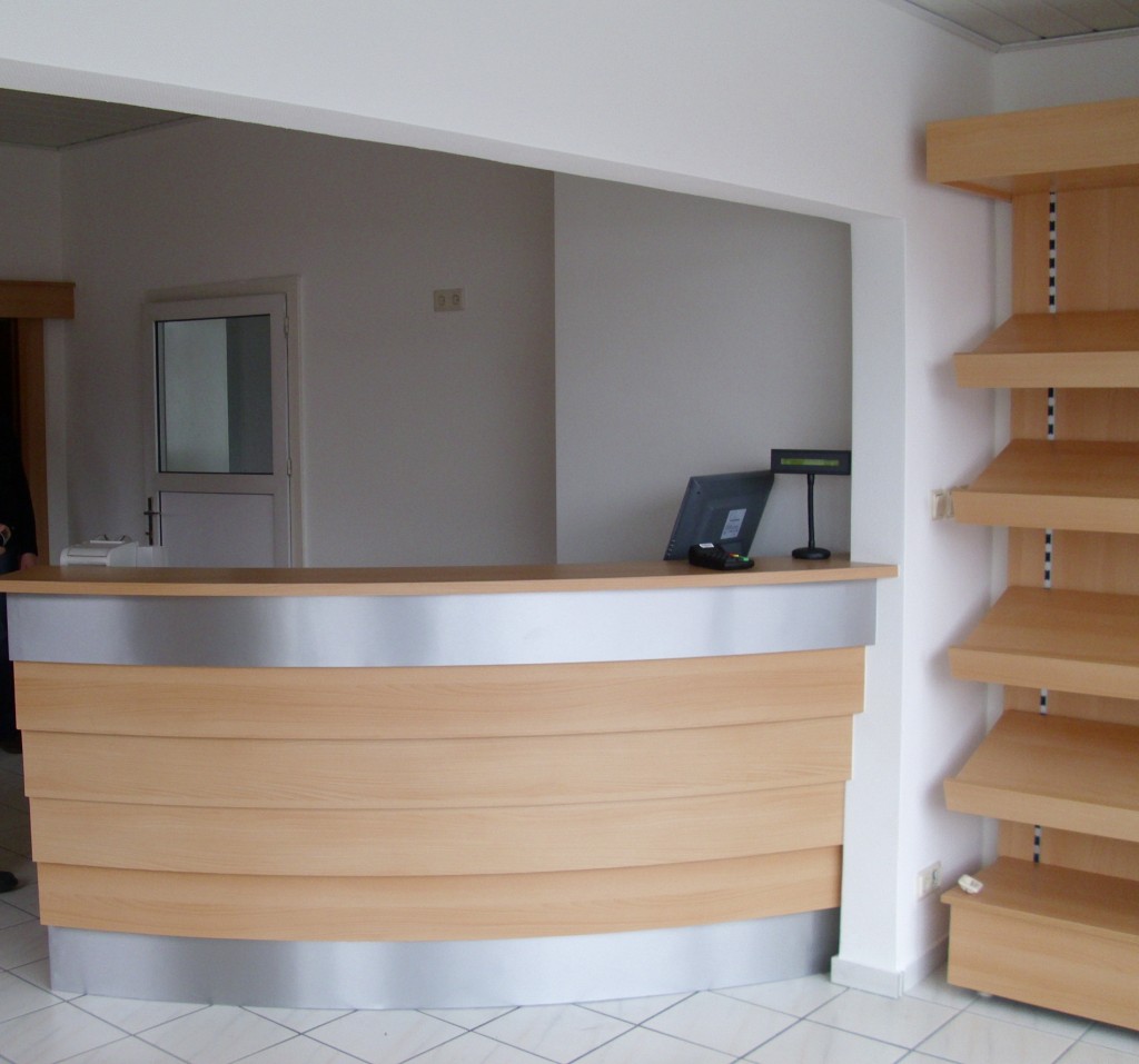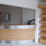 Gerundete Kunden-Theke mit Edelstahlkomponenten |